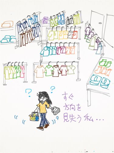 駅のショッピングモール内にある、ファミリー向け衣料品のお店に行きました。 仕事に来ていくTシャツを買うのが目的です。 日曜日なので混んでいて、人混みの中を何枚か取っては鏡に合わせてみてー これはやめようと戻しに行くのですが、もうどこから取った…